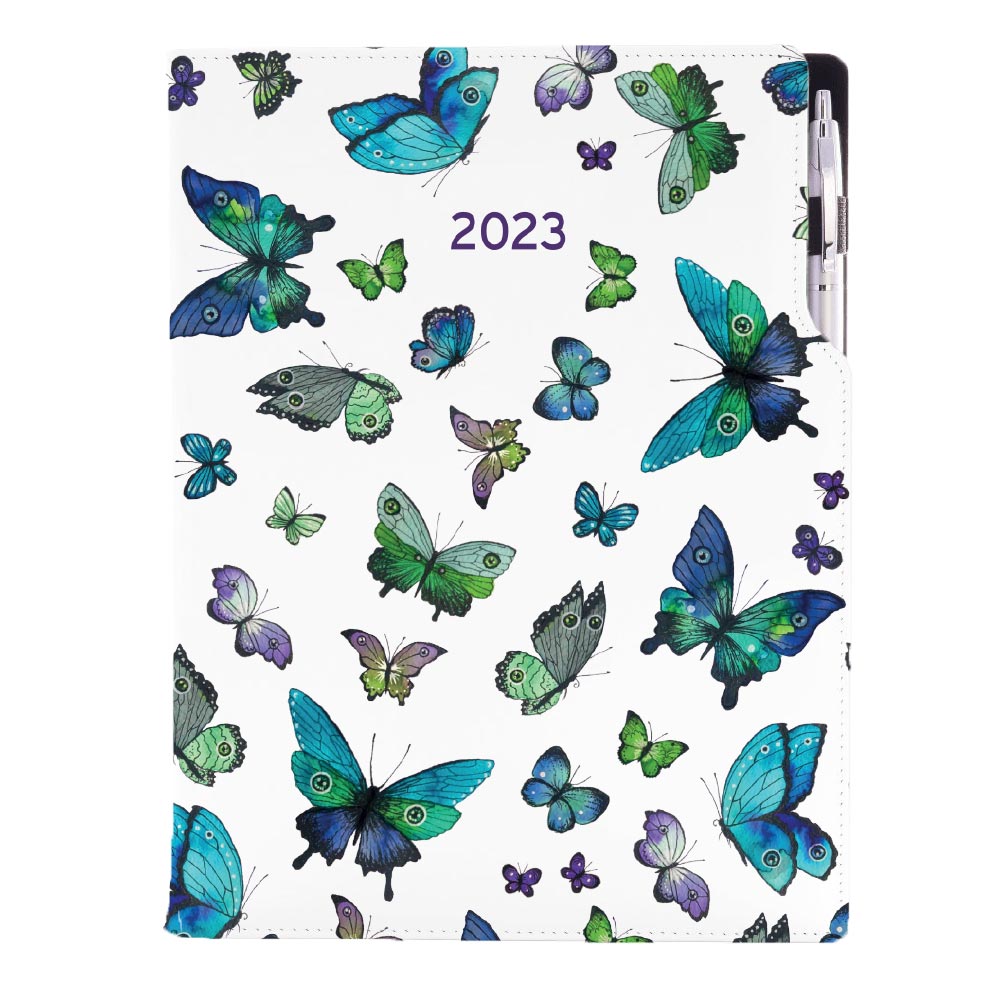 Kalendarz książkowy DESIGN tygodniowy A4 2023 polski - Niebieskie motyle