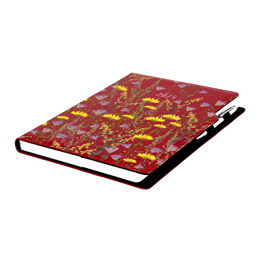 Kalendarz książkowy DESIGN tygodniowy A4 2025 CZ/SK polski - bordo - Łąka