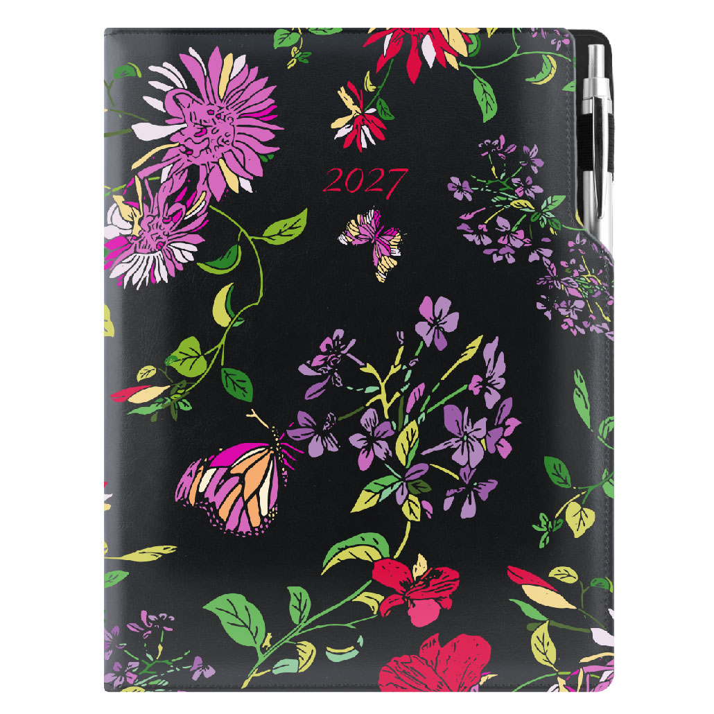 Kalendarz książkowy DESIGN tygodniowy A4 2027 polski - czarny - kwiaty