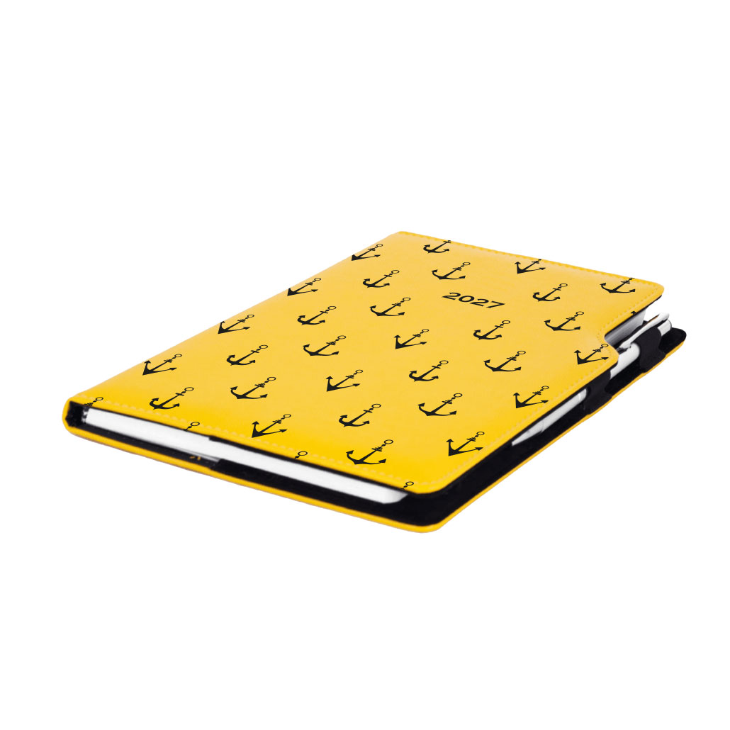 Kalendarz książkowy DESIGN tygodniowy A5 2027 polski - żółty - marynarski- kotwice