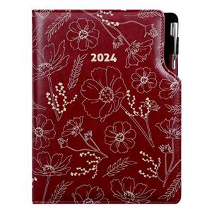 Kalendarz książkowy DESIGN tygodniowy B5 2024 polski - bordo - kwiaty