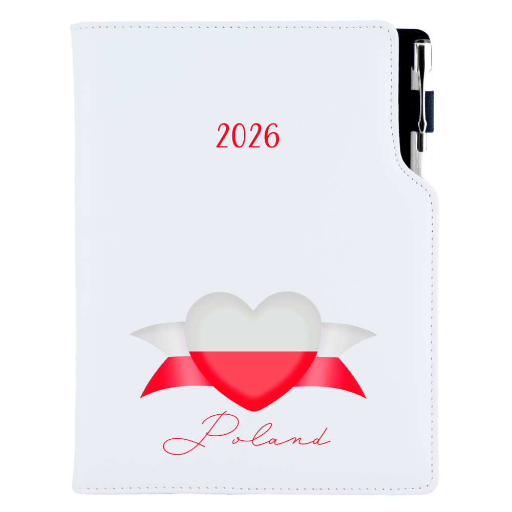 Kalendarz książkowy DESIGN tygodniowy z notesem A5 2026 - biały - Polska - flaga
