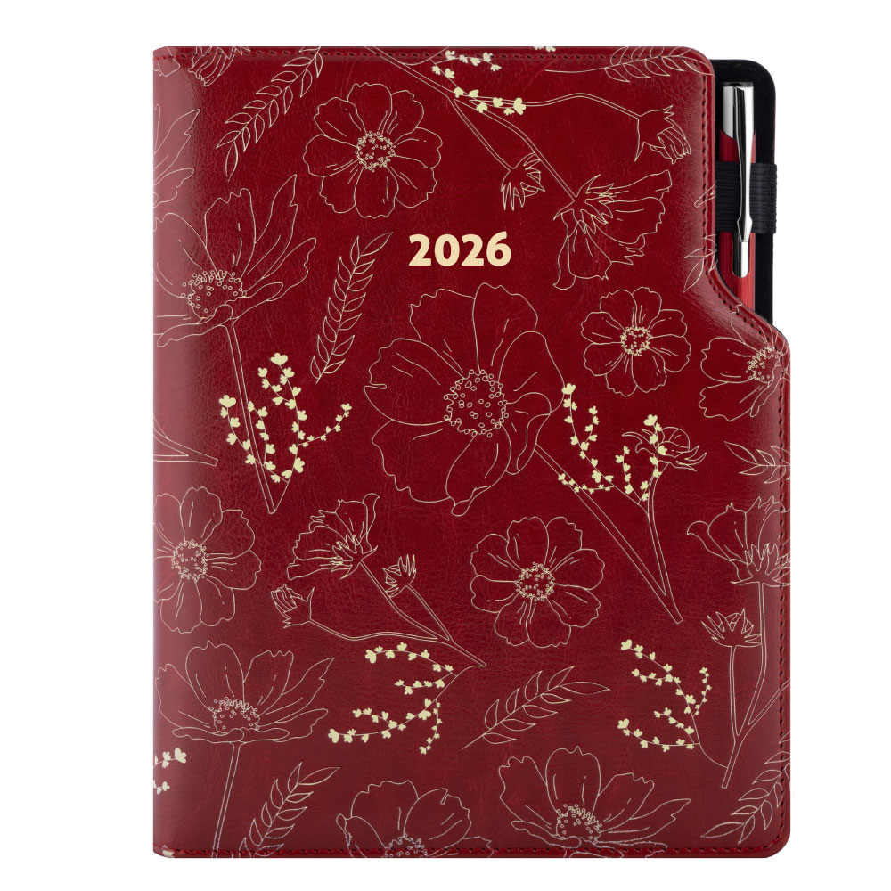 Kalendarz książkowy DESIGN tygodniowy z notesem A5 2026 - bordowy - kwiaty
