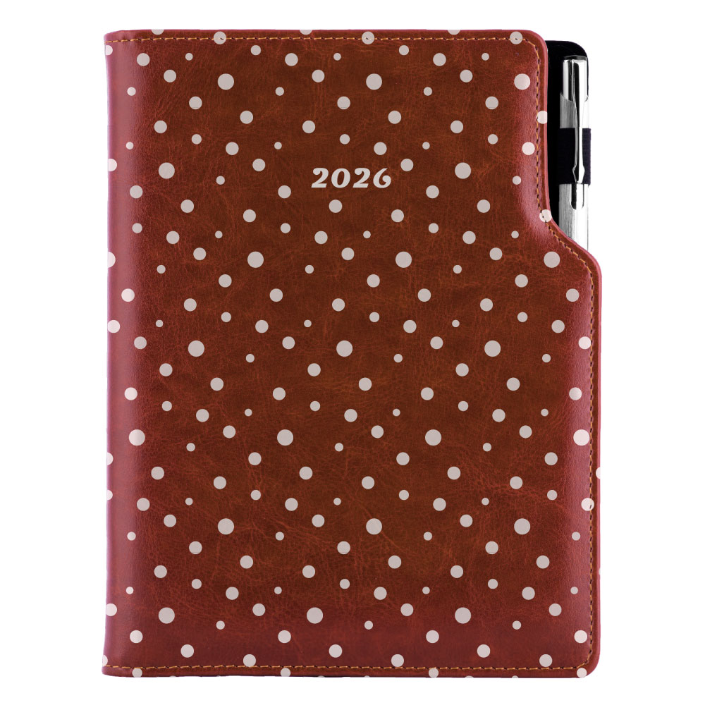 Kalendarz książkowy DESIGN tygodniowy z notesem A5 2026 - brązowy - kropki