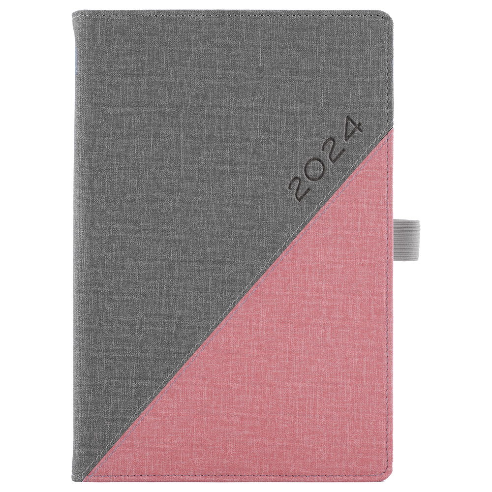 Kalendarz książkowy DIEGO dzienny A5 2024 słowacki?? - szary/różowy