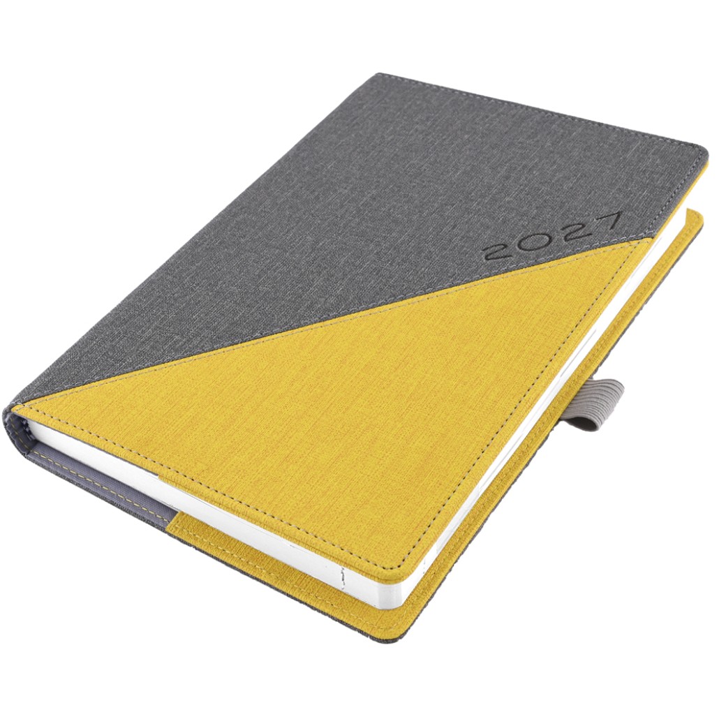 Kalendarz książkowy DIEGO dzienny A5 2027 polski - szary/żółty