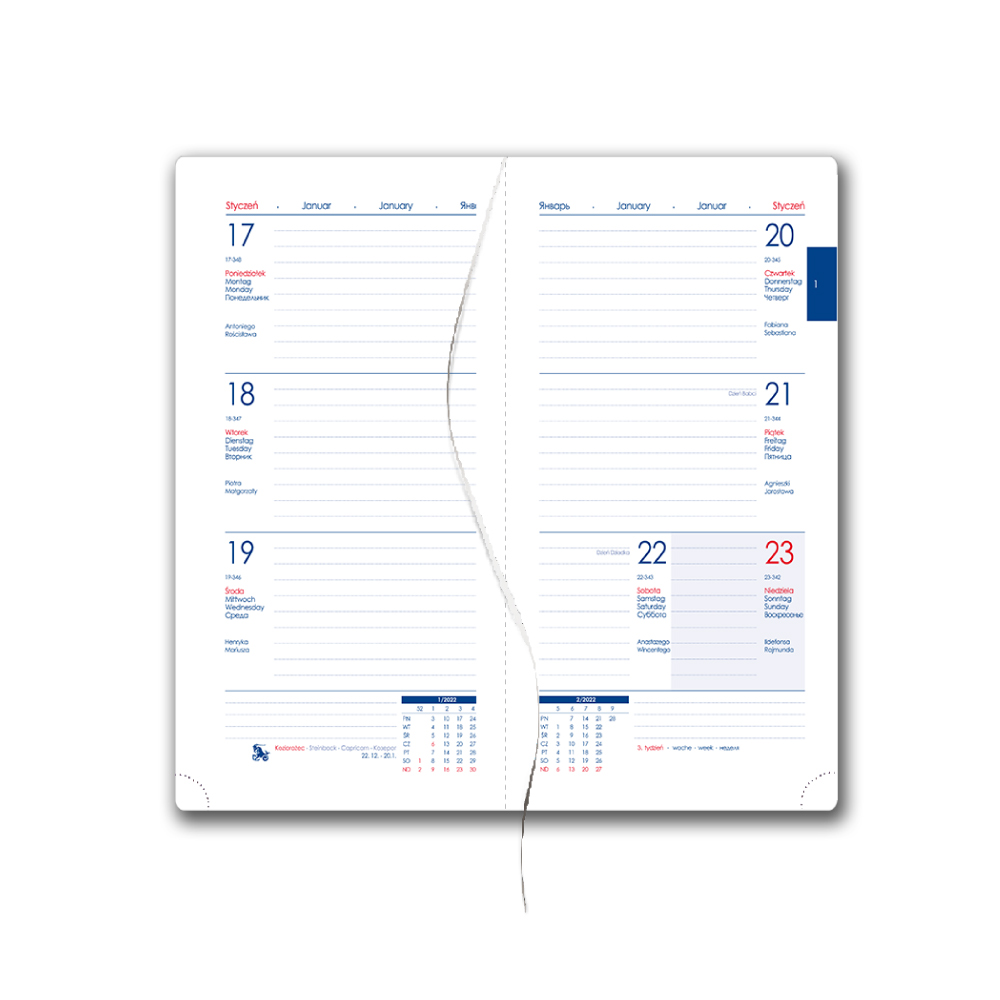 Kalendarz książkowy DIEGO tygodniowy kieszonkowy 2022 polski - granatowy/granatowy