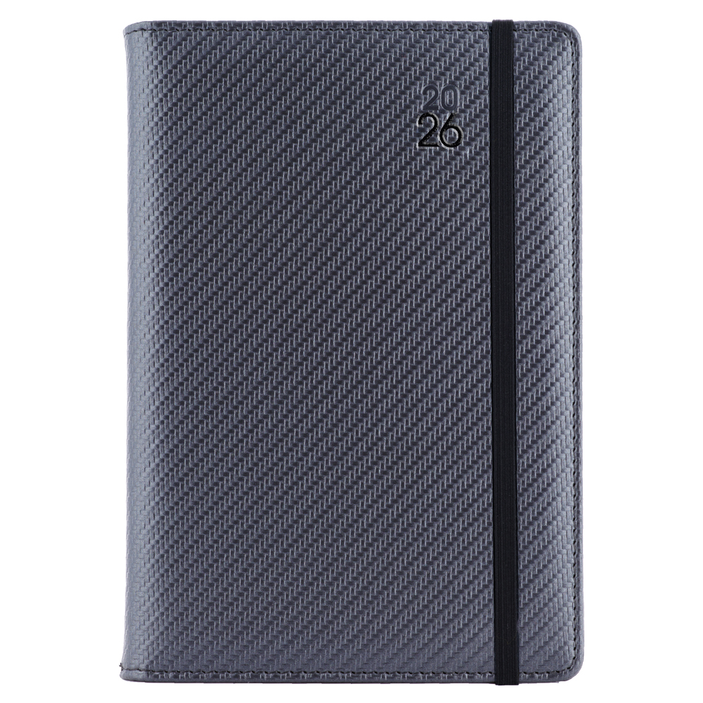 Kalendarz książkowy ELASTIC dzienny A5 2026 czeski - grafit/czarna gumka