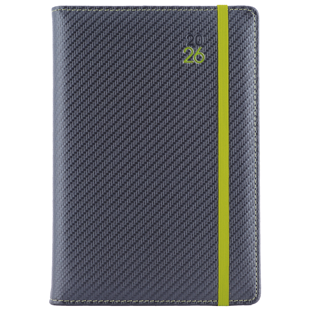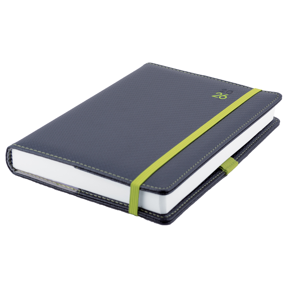 Kalendarz książkowy ELASTIC dzienny A5 2026 czeski - grafit/zielona gumka