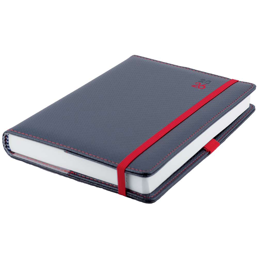 Kalendarz książkowy ELASTIC dzienny A5 2026 słowacki?? - grafit/czerwona gumka