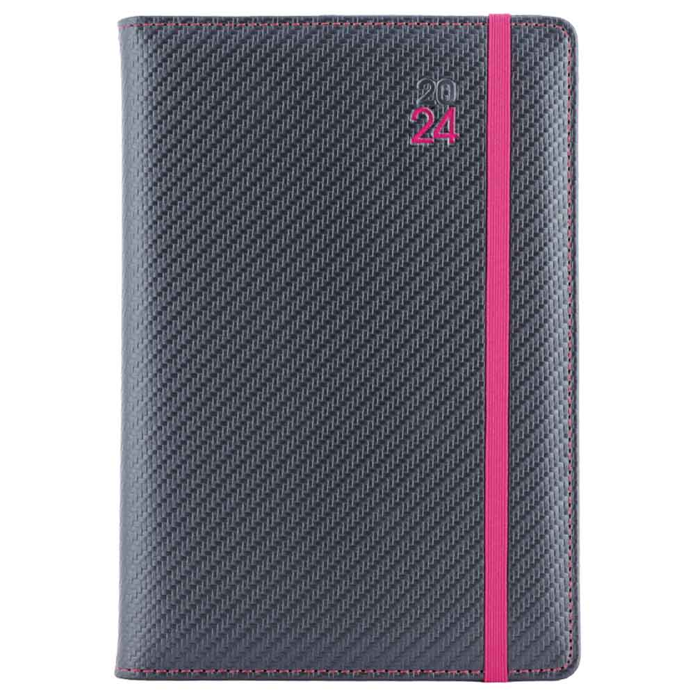 Kalendarz książkowy ELASTIC tygodniowy A5 2024 słowacki?? - grafit/magenta gumka