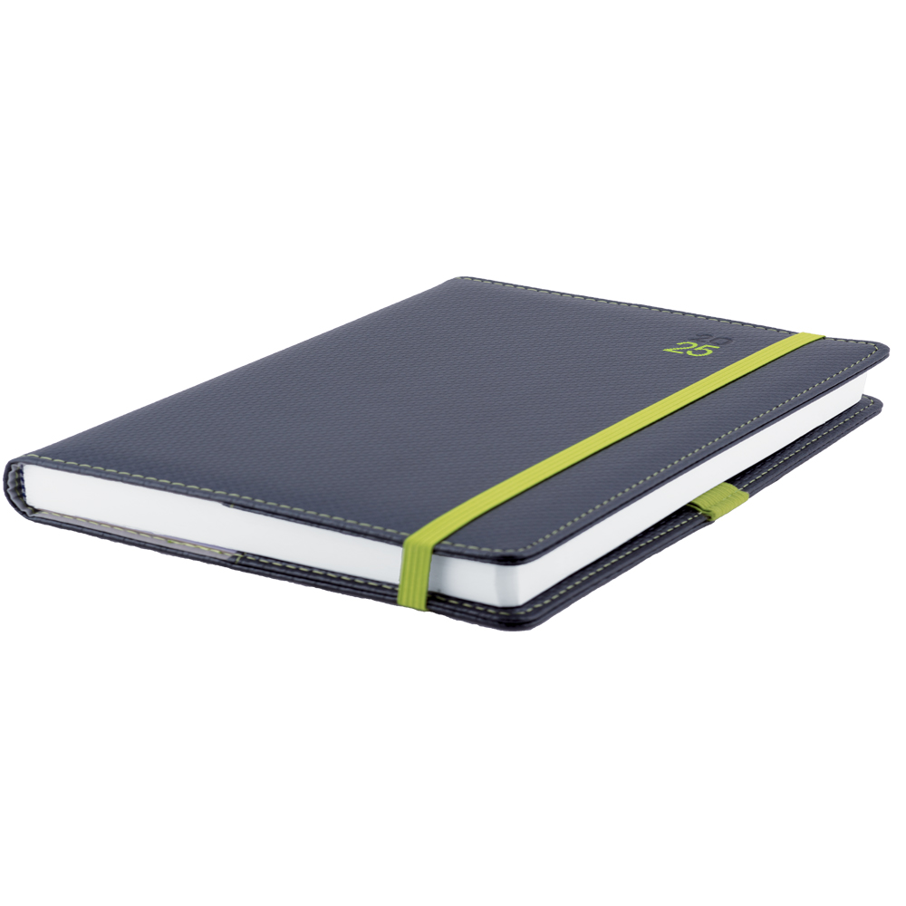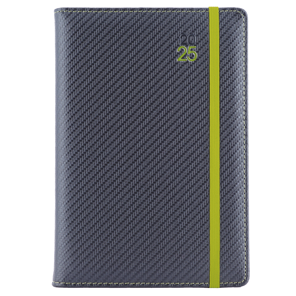 Kalendarz książkowy ELASTIC tygodniowy A5 2025 słowacki?? - grafit/zielona gumka