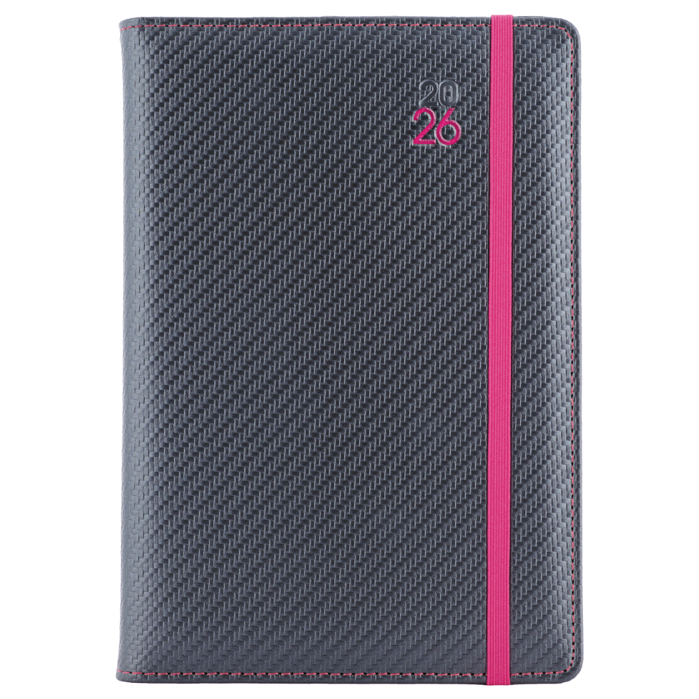 Kalendarz książkowy ELASTIC tygodniowy A5 2026 czeski - grafit/magenta gumka