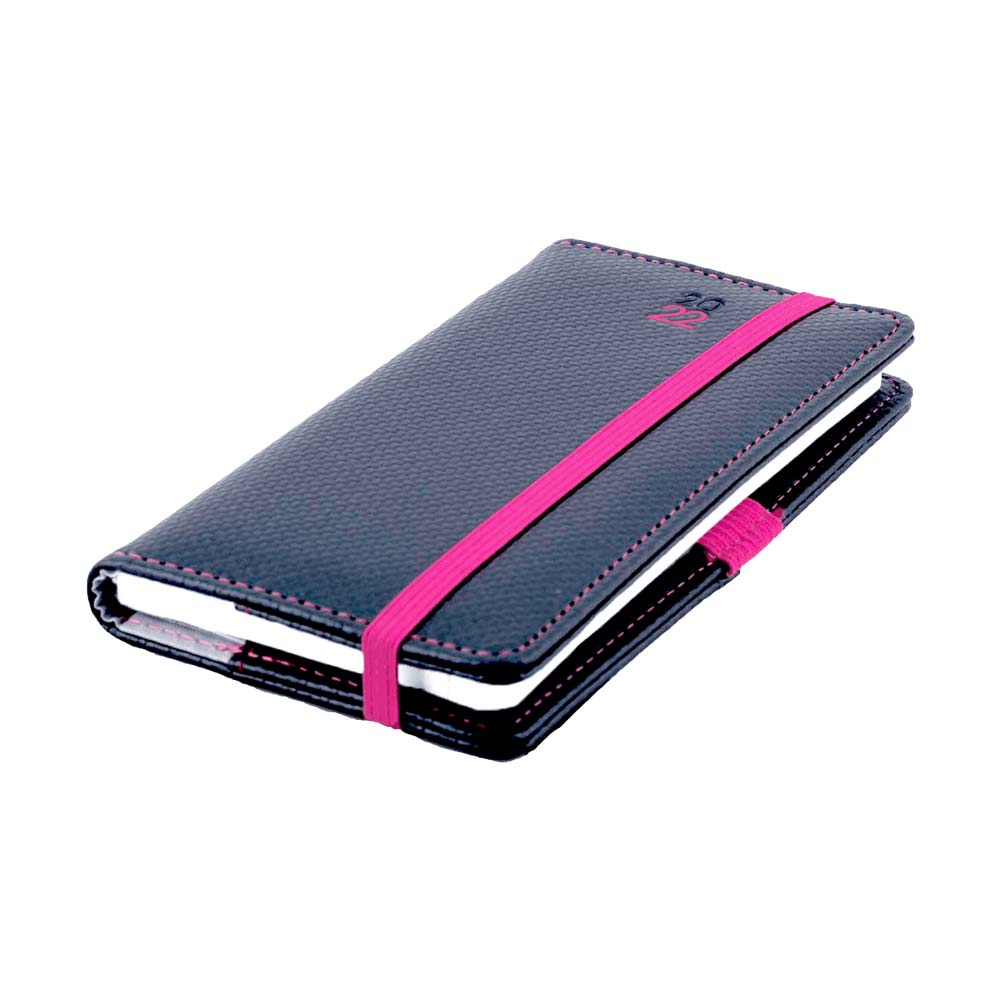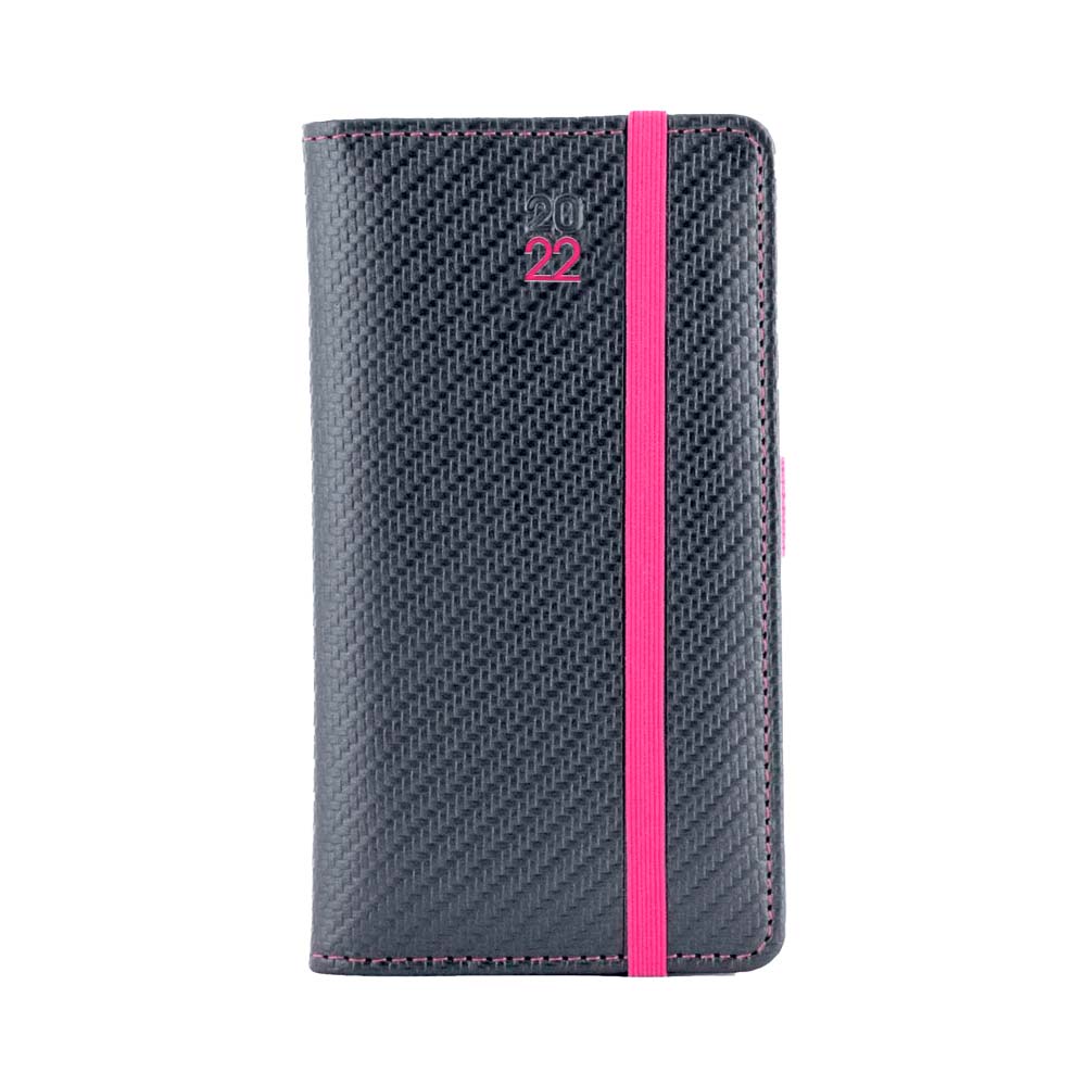 Kalendarz książkowy ELASTIC tygodniowy kieszonkowy 2022 słowacki?? - grafit/magenta gumka
