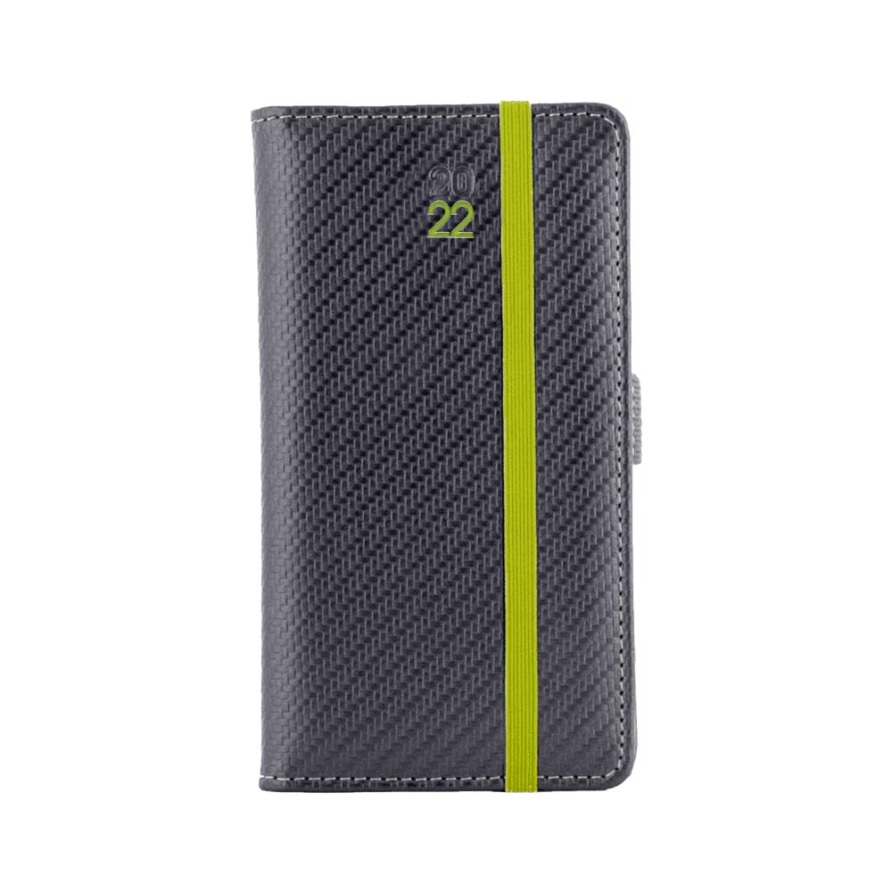 Kalendarz książkowy ELASTIC tygodniowy kieszonkowy 2022 słowacki?? - grafit/zielona gumka