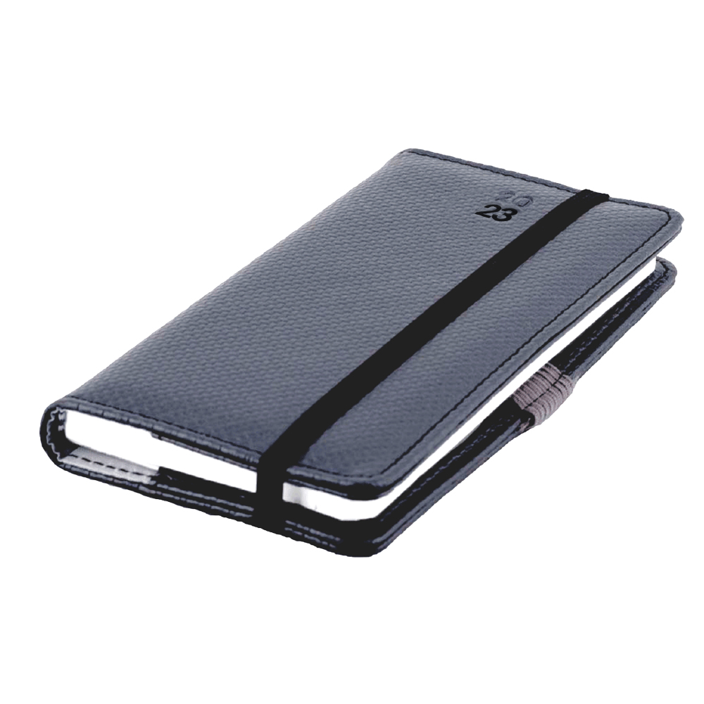 Kalendarz książkowy ELASTIC tygodniowy kieszonkowy 2023 czeski - grafit/czarna gumka
