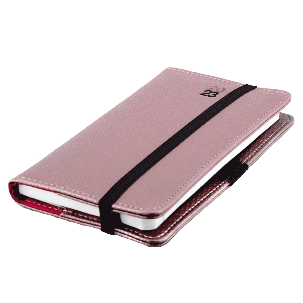 Kalendarz książkowy ELASTIC tygodniowy kieszonkowy 2023 czeski - pudrowy/czarna gumka