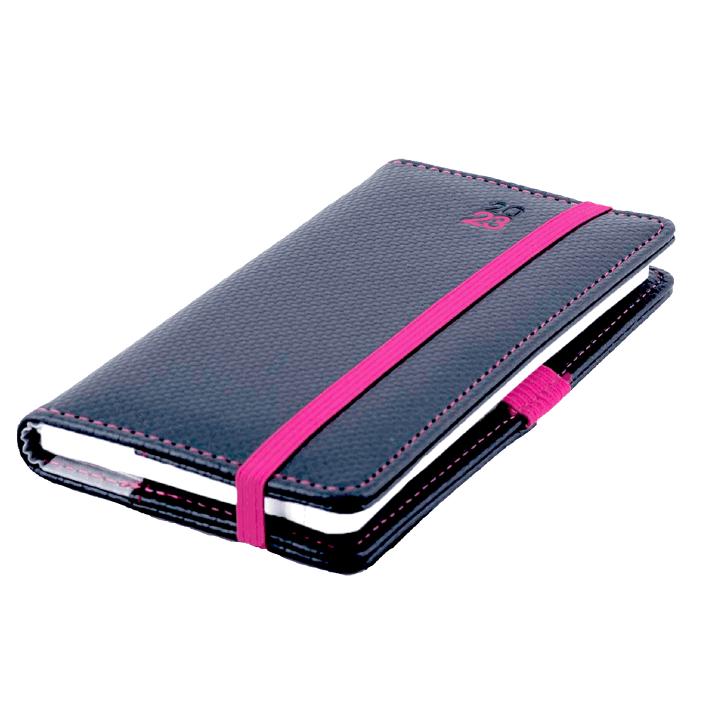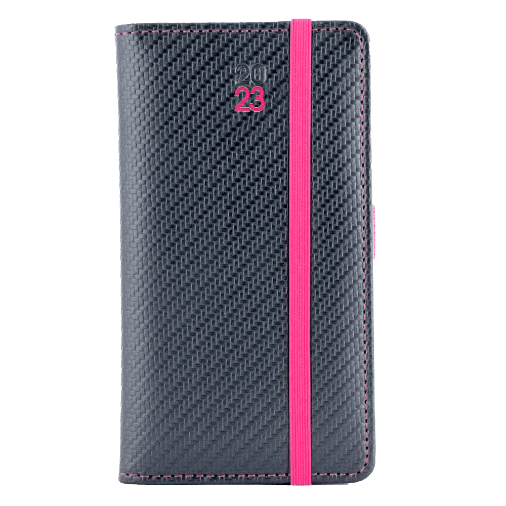 Kalendarz książkowy ELASTIC tygodniowy kieszonkowy 2023 słowacki?? - grafit/magenta gumka