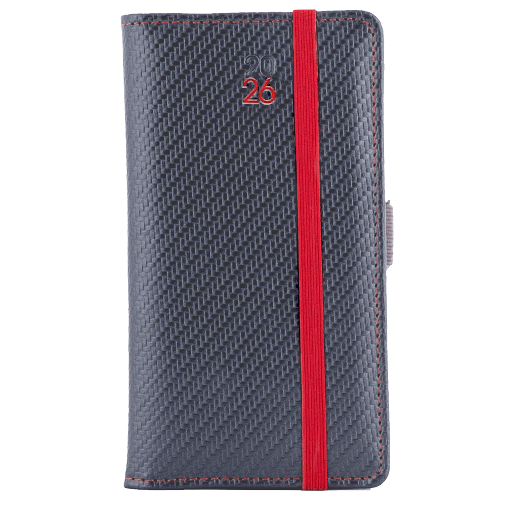 Kalendarz książkowy ELASTIC tygodniowy kieszonkowy 2026 czeski - grafit/czerwona gumka