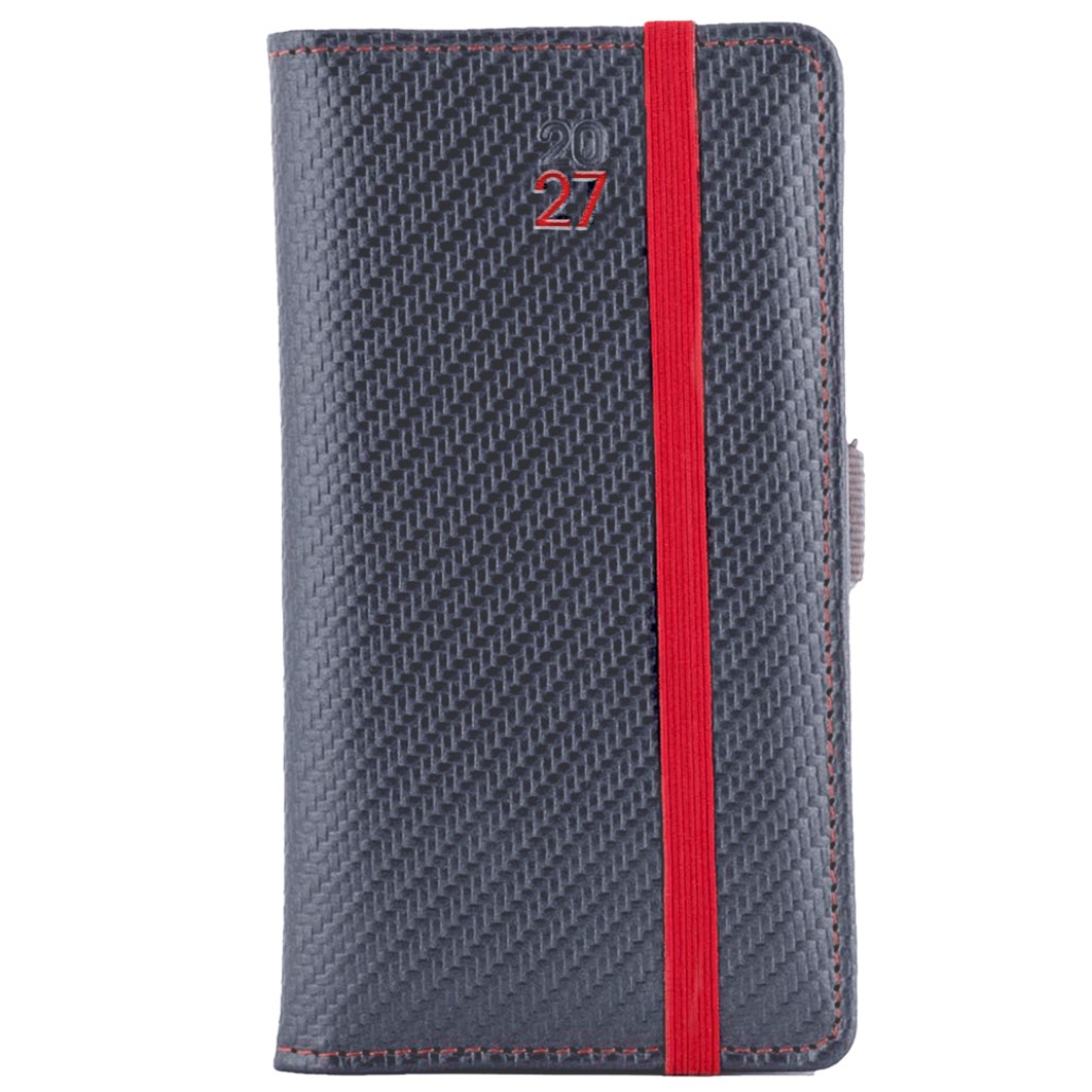 Kalendarz książkowy ELASTIC tygodniowy kieszonkowy 2027 polski - grafit/czerwona gumka