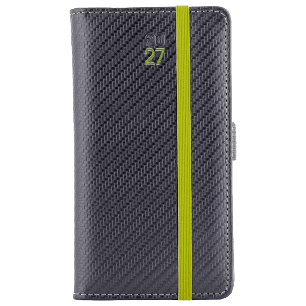 Kalendarz książkowy ELASTIC tygodniowy kieszonkowy 2027 polski - grafit/zielona gumka