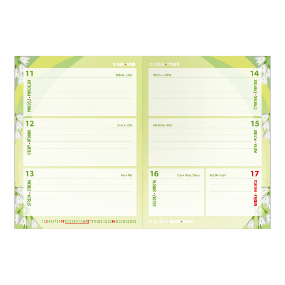 Kalendarz książkowy Flora 2016 tygodniowy - żółty