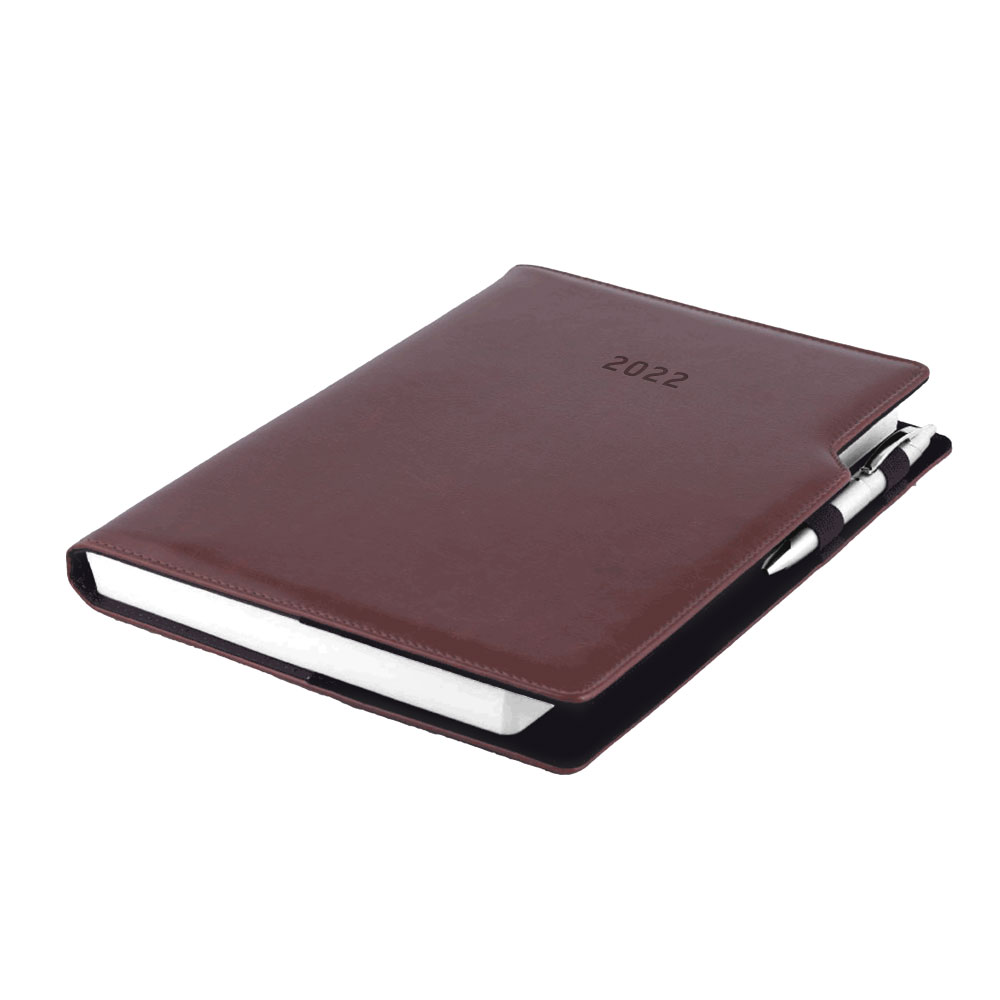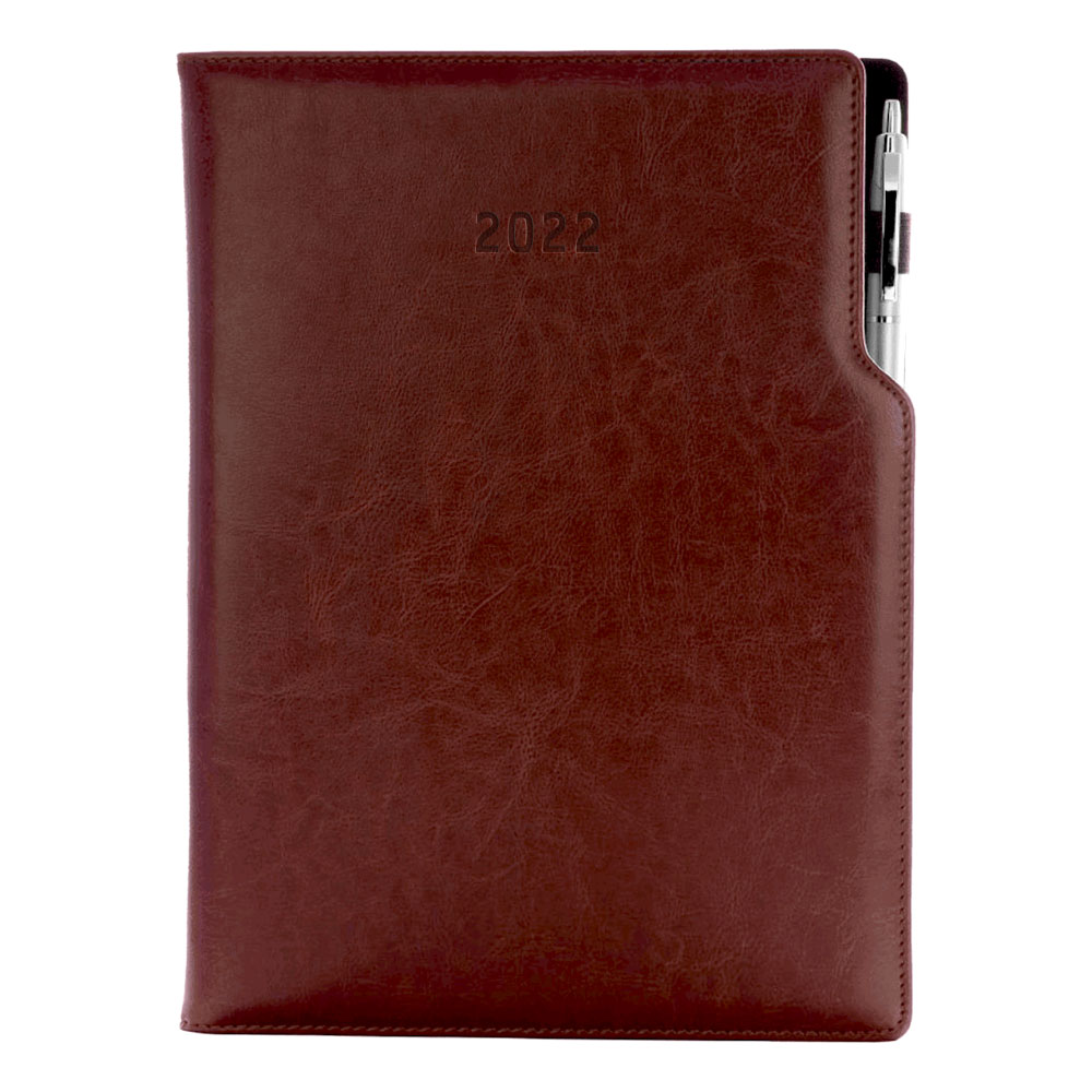 Kalendarz książkowy GEP z długopisem dzienny A4 2022 polski - brązowy