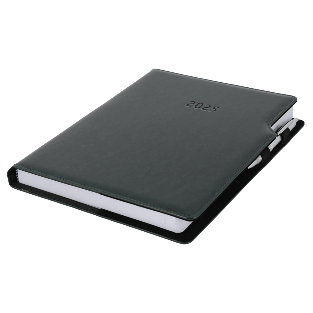 Kalendarz książkowy GEP z długopisem dzienny A4 2025 polski - zielony