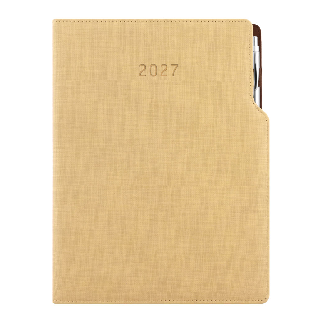 Kalendarz książkowy GEP z długopisem dzienny A4 2027 polski - beżowy