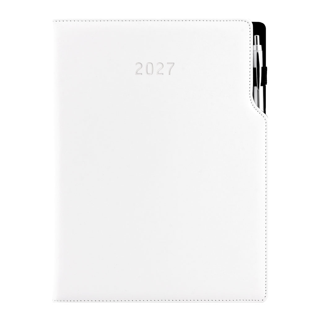 Kalendarz książkowy GEP z długopisem dzienny A4 2027 polski - biały (białe szwy)