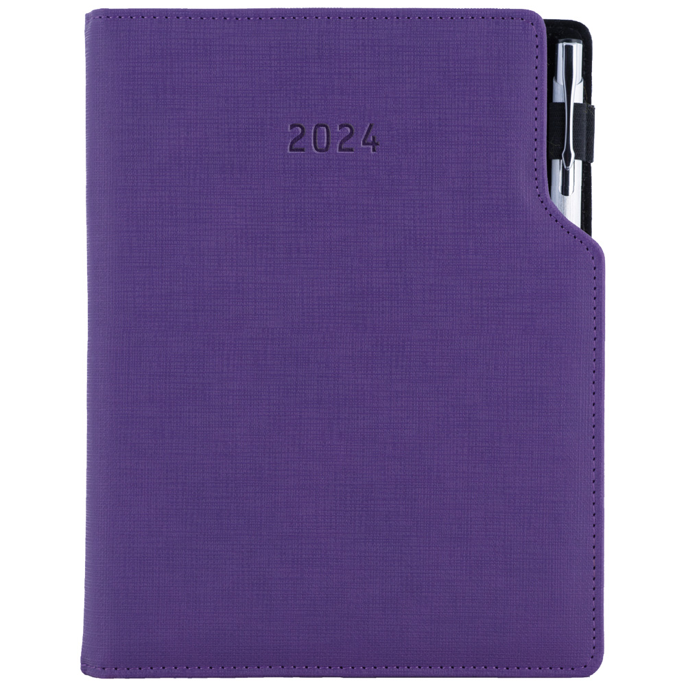 Kalendarz książkowy GEP z długopisem dzienny A5 2024 polski - fioletowy