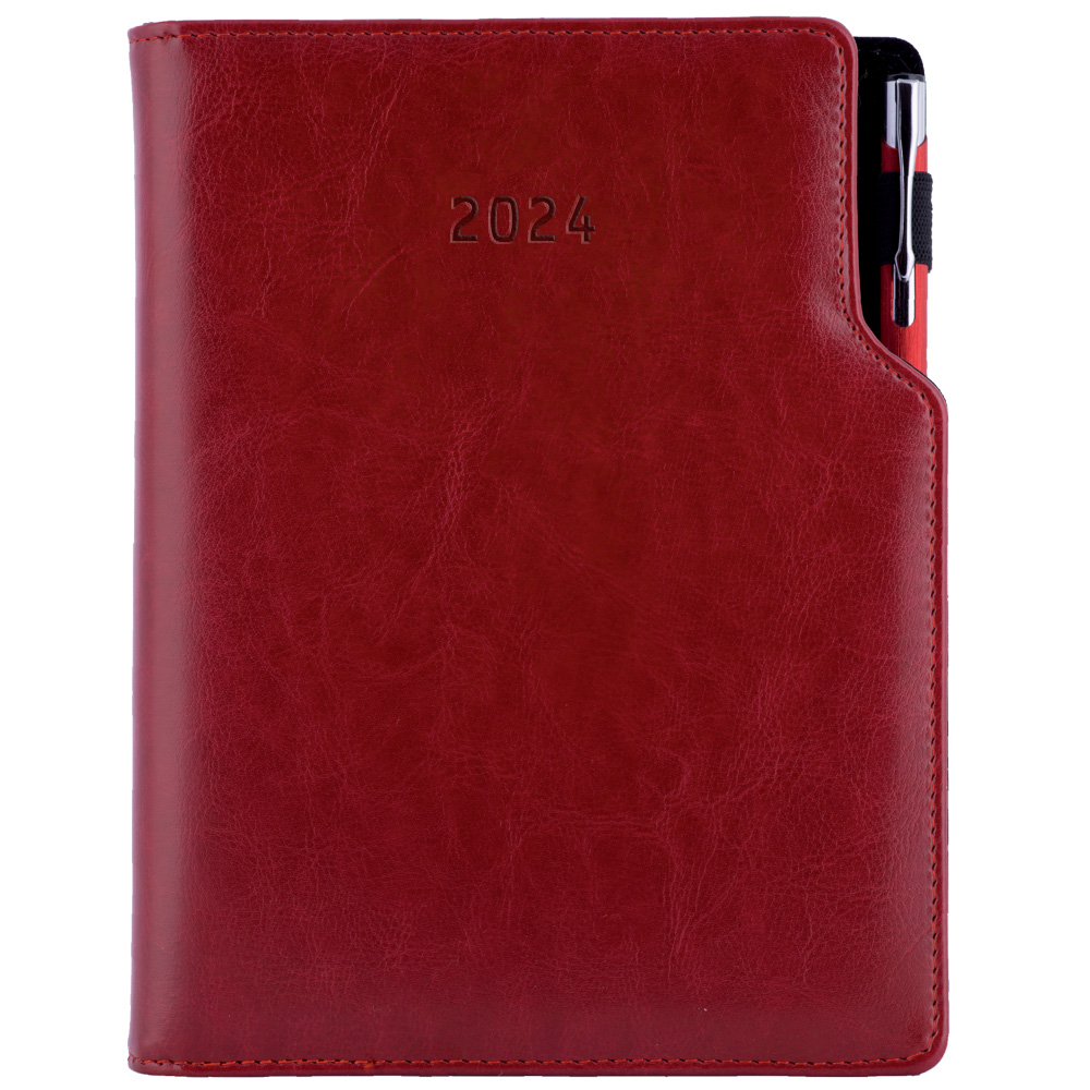 Kalendarz książkowy GEP z długopisem dzienny A5 2024 słowacki?? - bordowy