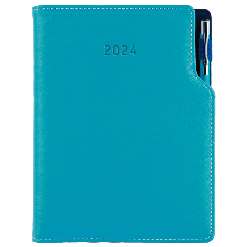 Kalendarz książkowy GEP z długopisem dzienny A5 2024 słowacki?? - turkusowy (niebieskie wnętrze)