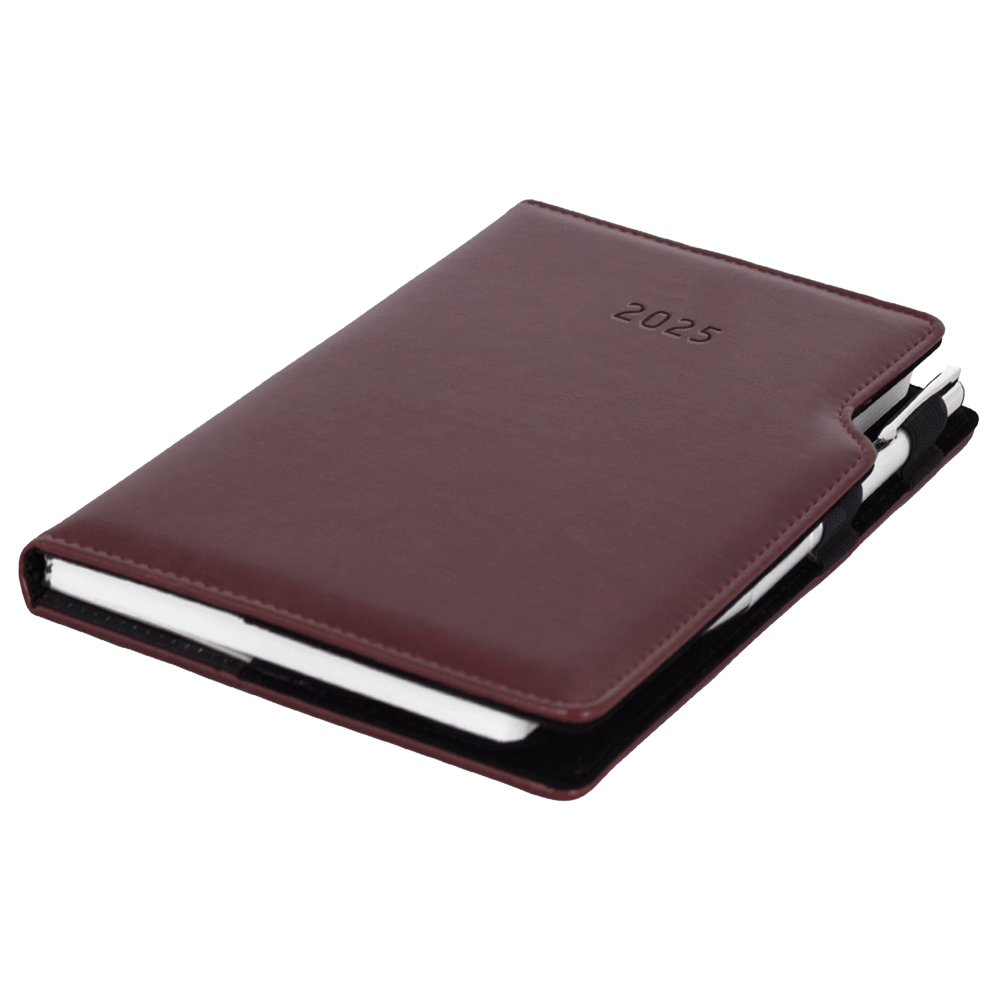 Kalendarz książkowy GEP z długopisem dzienny A5 2025 czeski - brązowy