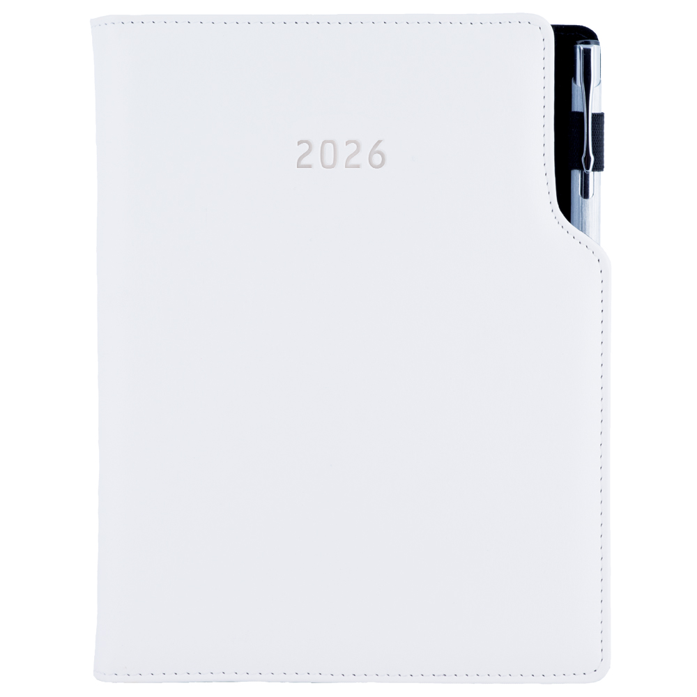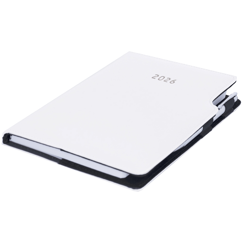 Kalendarz książkowy GEP z długopisem dzienny A5 2026 słowacki?? - biały (czarne szwy)