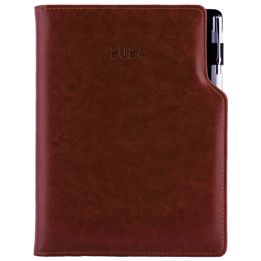 Kalendarz książkowy GEP z długopisem dzienny B6 2024 CZ/SK - brązowy