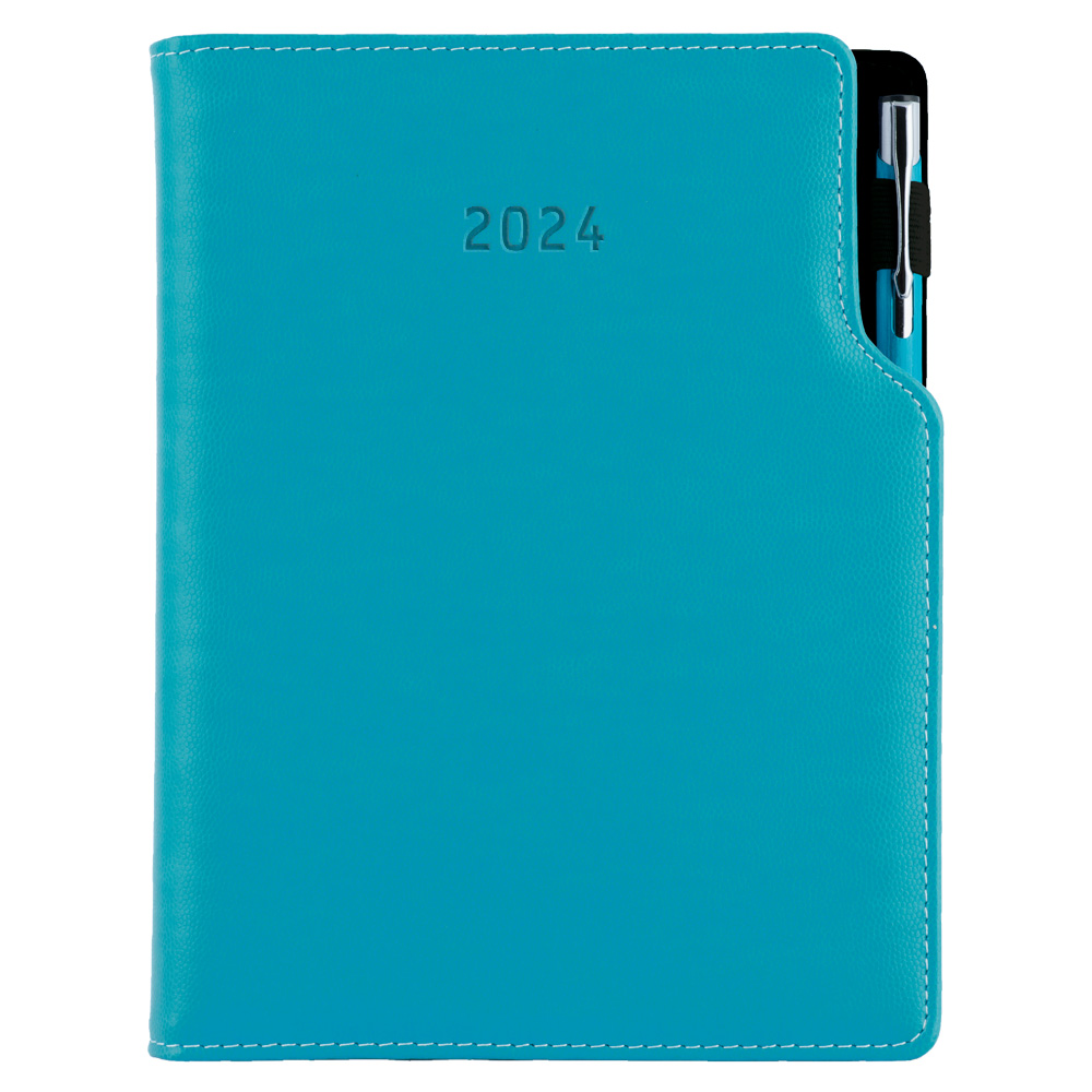 Kalendarz książkowy GEP z długopisem dzienny B6 2024 polski - turkusowy (czarne wnętrze)