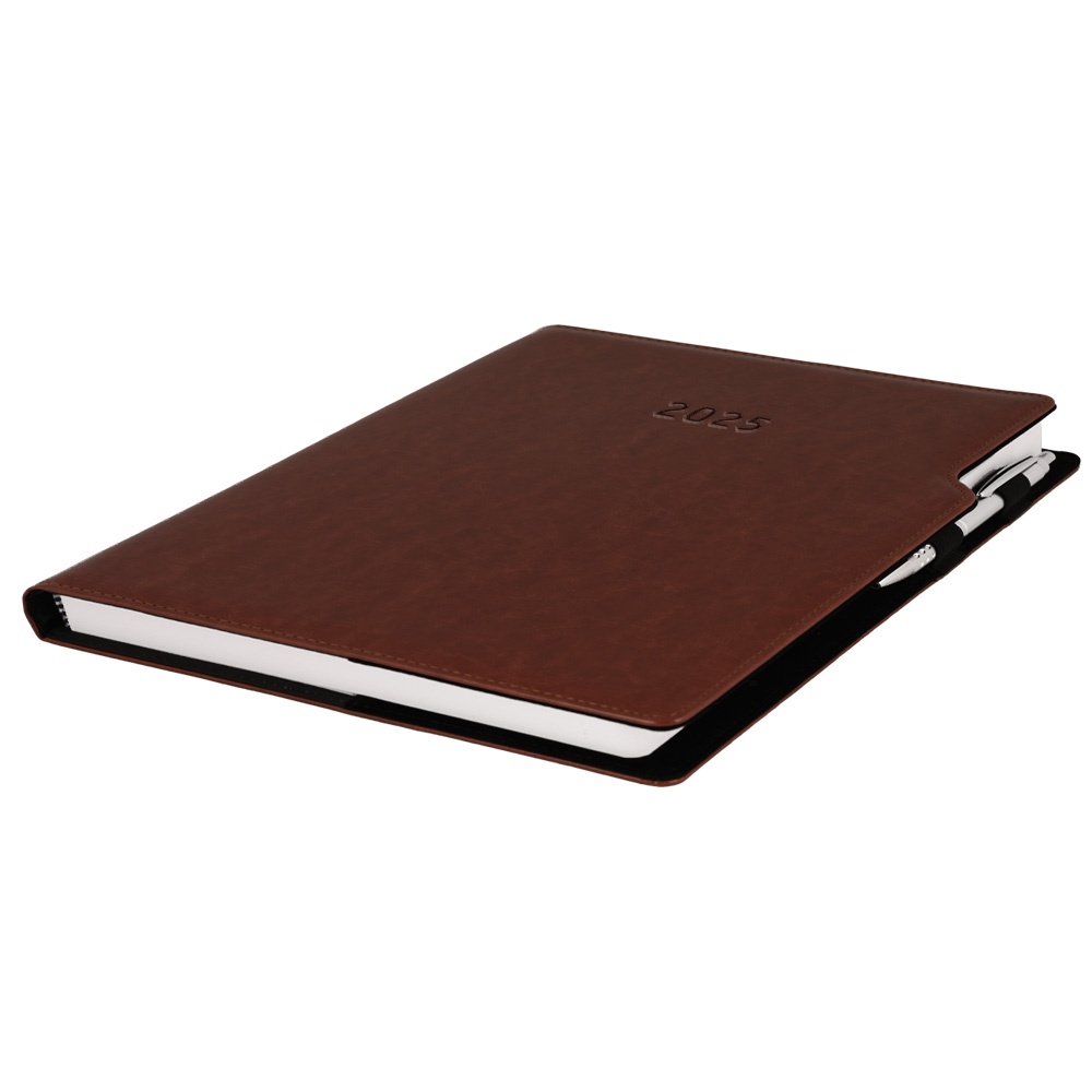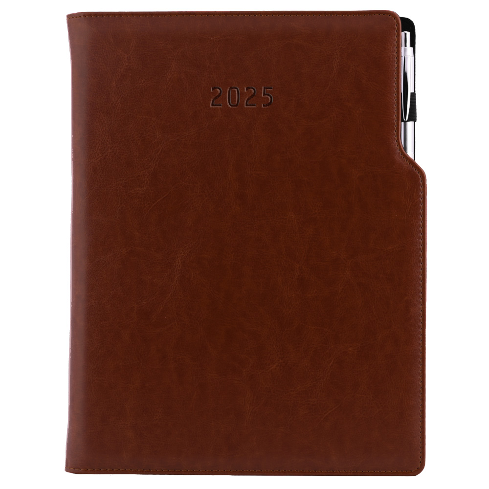 Kalendarz książkowy GEP z długopisem tygodniowy A4 2025 CZ/SK - brązowy