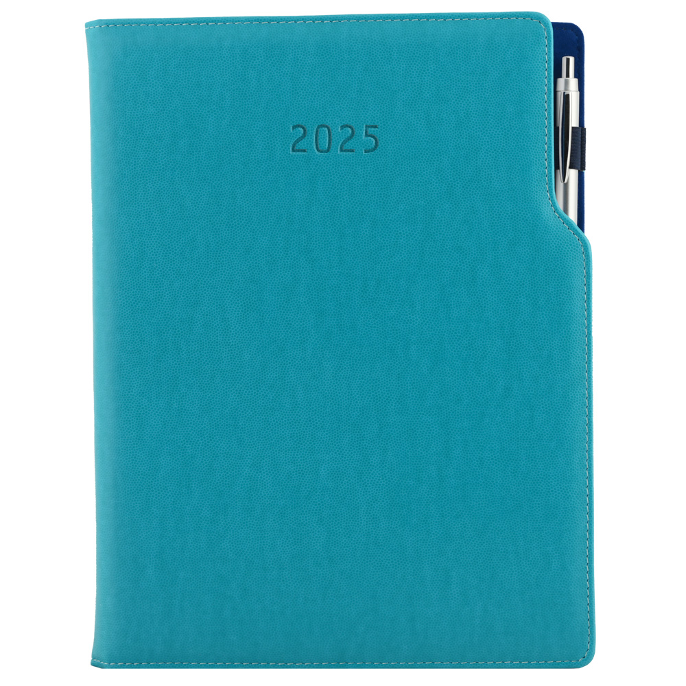 Kalendarz książkowy GEP z długopisem tygodniowy A4 2025 CZ/SK - turkusowy (niebieskie wnętrze)