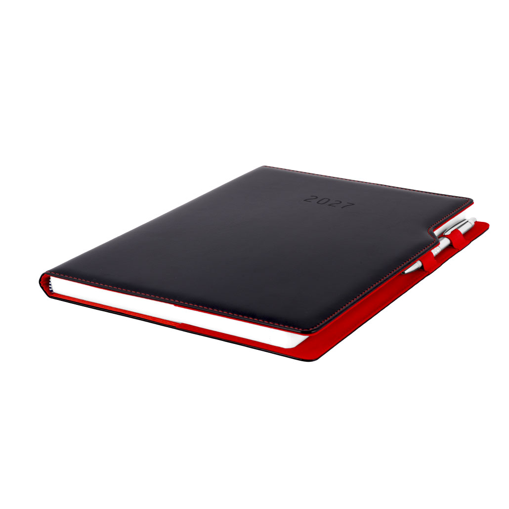 Kalendarz książkowy GEP z długopisem tygodniowy A4 2027 polski - czarny (czerwone wnętrze)