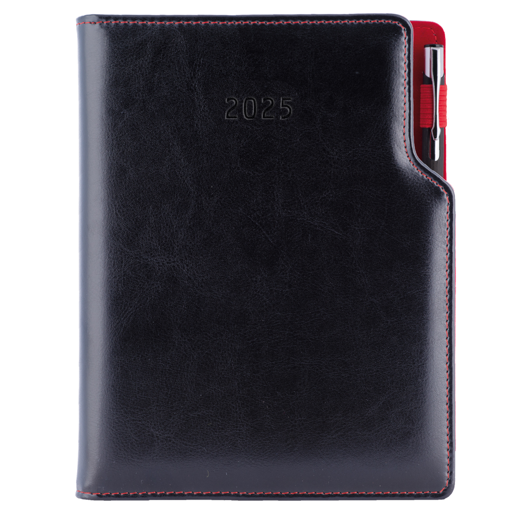 Kalendarz książkowy GEP z długopisem tygodniowy A5 2025 czeski - czarny (czerwone wnętrze)