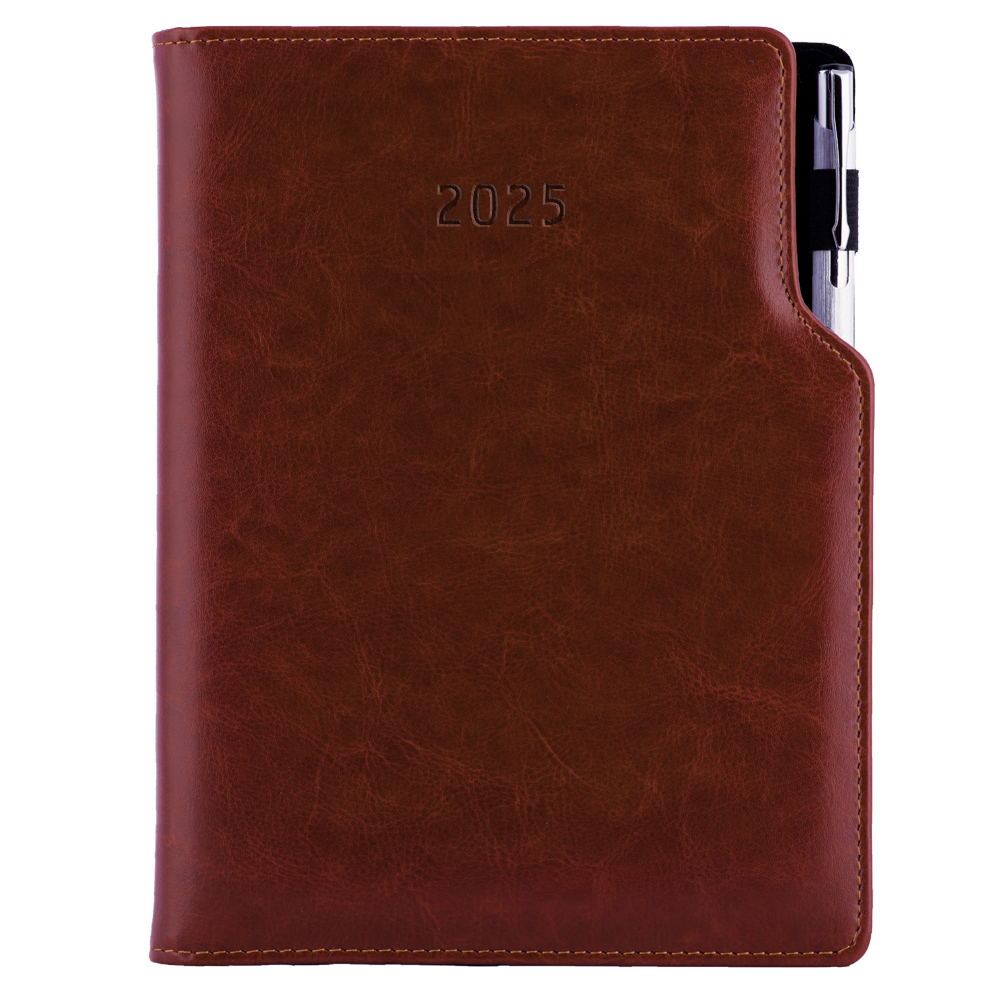 Kalendarz książkowy GEP z długopisem tygodniowy B6 2025 CZ/SK - brązowy