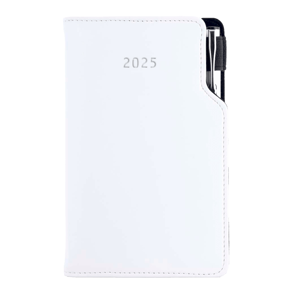 Kalendarz książkowy GEP z długopisem tygodniowy kieszonkowy 2025 słowacki?? - biały (białe szwy)