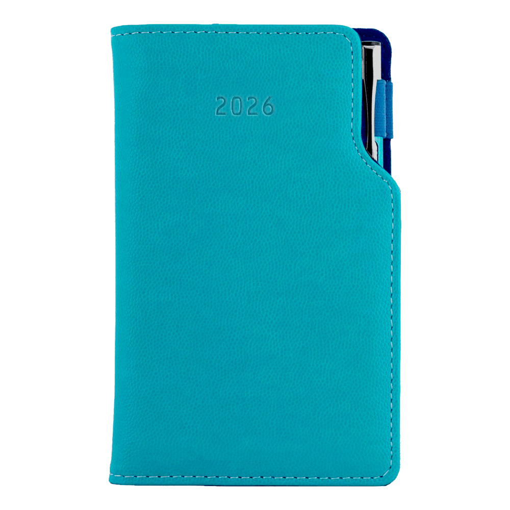 Kalendarz książkowy GEP z długopisem tygodniowy kieszonkowy 2026 czeski - turkusowy (niebieskie wnętrze)