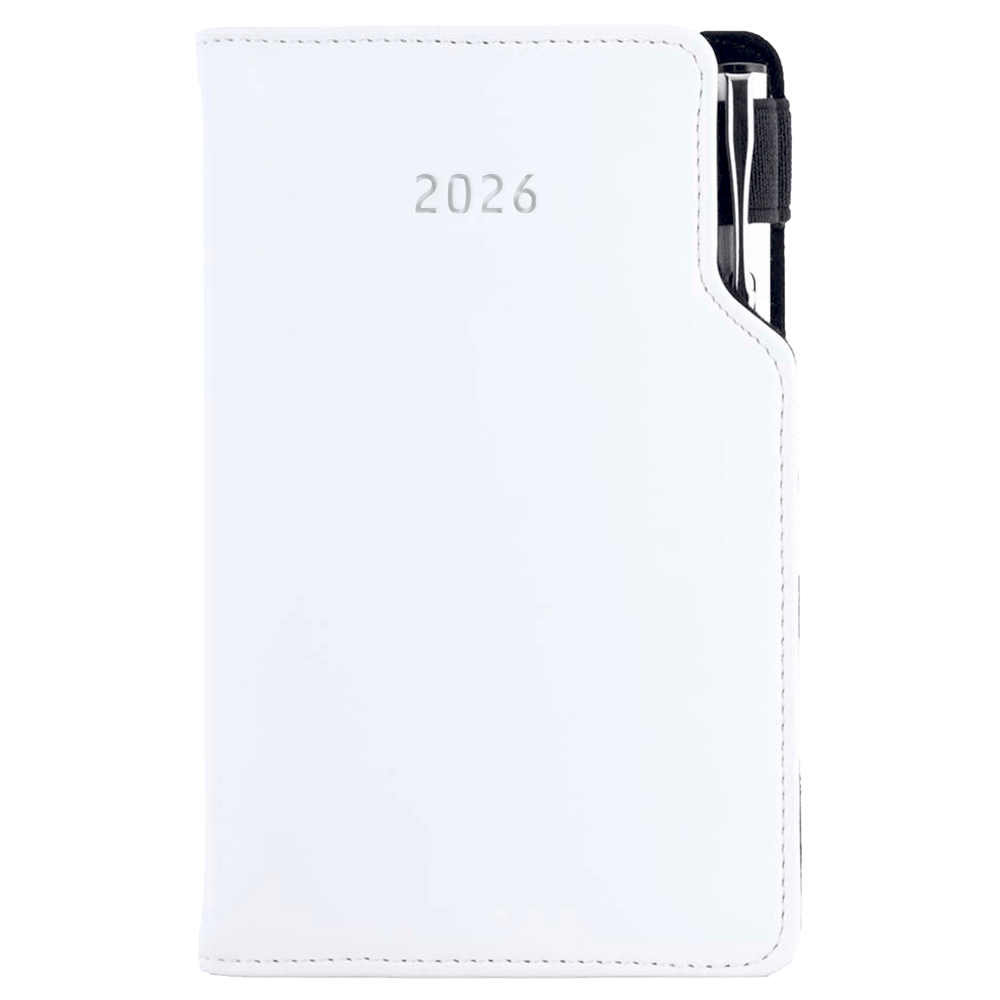 Kalendarz książkowy GEP z długopisem tygodniowy kieszonkowy 2026 słowacki?? - biały (białe szwy)
