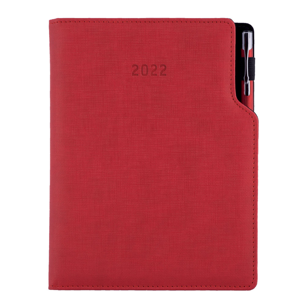 Kalendarz książkowy GEP z długopisem tygodniowy z notesem A5 2022 CZ/SK - czerwony