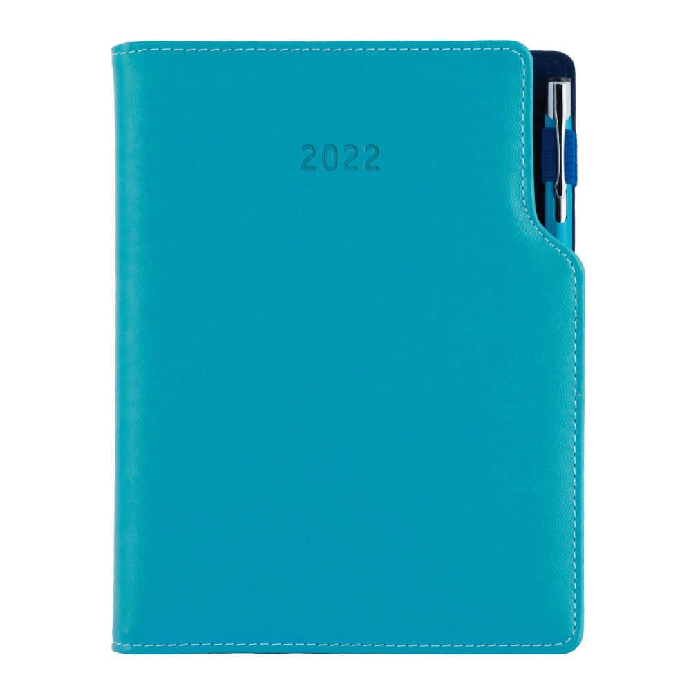 Kalendarz książkowy GEP z długopisem tygodniowy z notesem A5 2022 CZ/SK - turkusowy (niebieskie wnętrze)