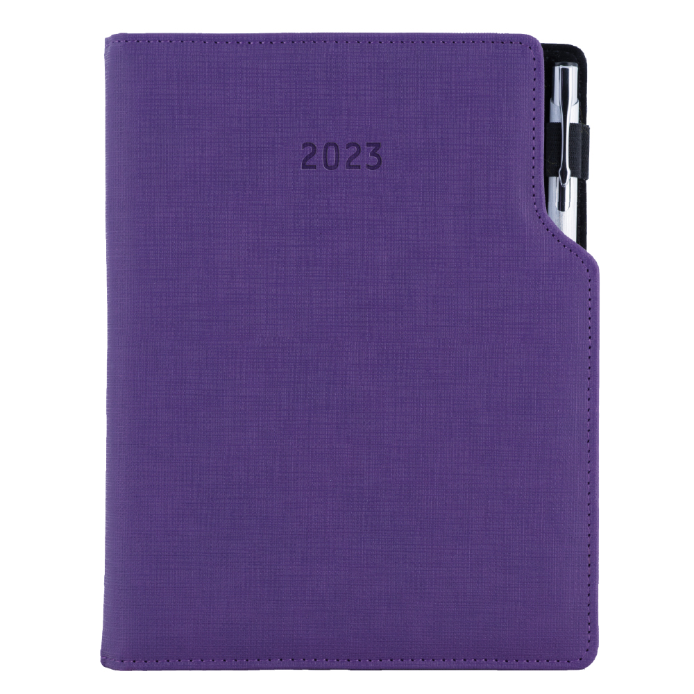 Kalendarz książkowy GEP z długopisem tygodniowy z notesem A5 2023 CZ/SK - fioletowy