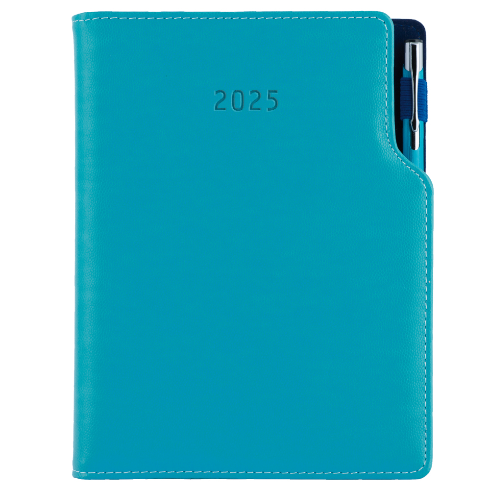 Kalendarz książkowy GEP z długopisem tygodniowy z notesem A5 2025 CZ/SK - turkusowy (niebieskie wnętrze)