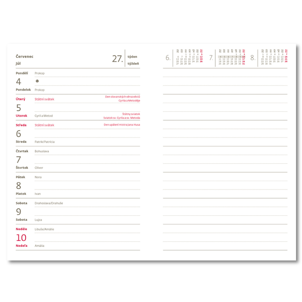 Kalendarz książkowy 2016 kieszonkowy tygodniowy Poketto Stamp Format: 10 x 15 cm Kalendarium: tygodniowe, czeskie i słowackie Zakres kalendarza: 128 stron Materiał wierzchni: Laminat